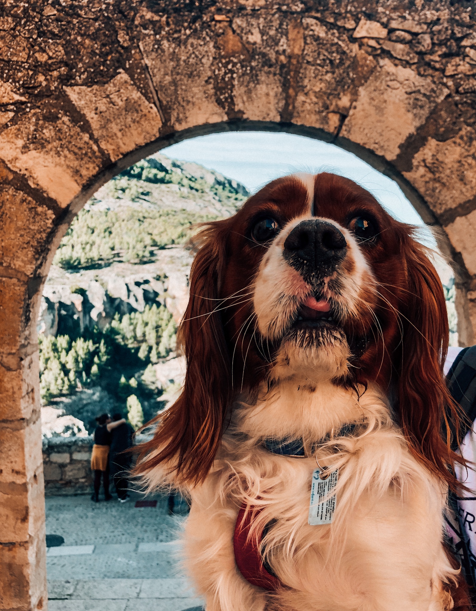 Rio loved walking around the grassy area of Cuenca and around the rocks that have the most beautiful view of the hanging houses and the ground so far below. We also just had to get some photos of him smiling with the view behind, as this arch just makes a stunning frame.
