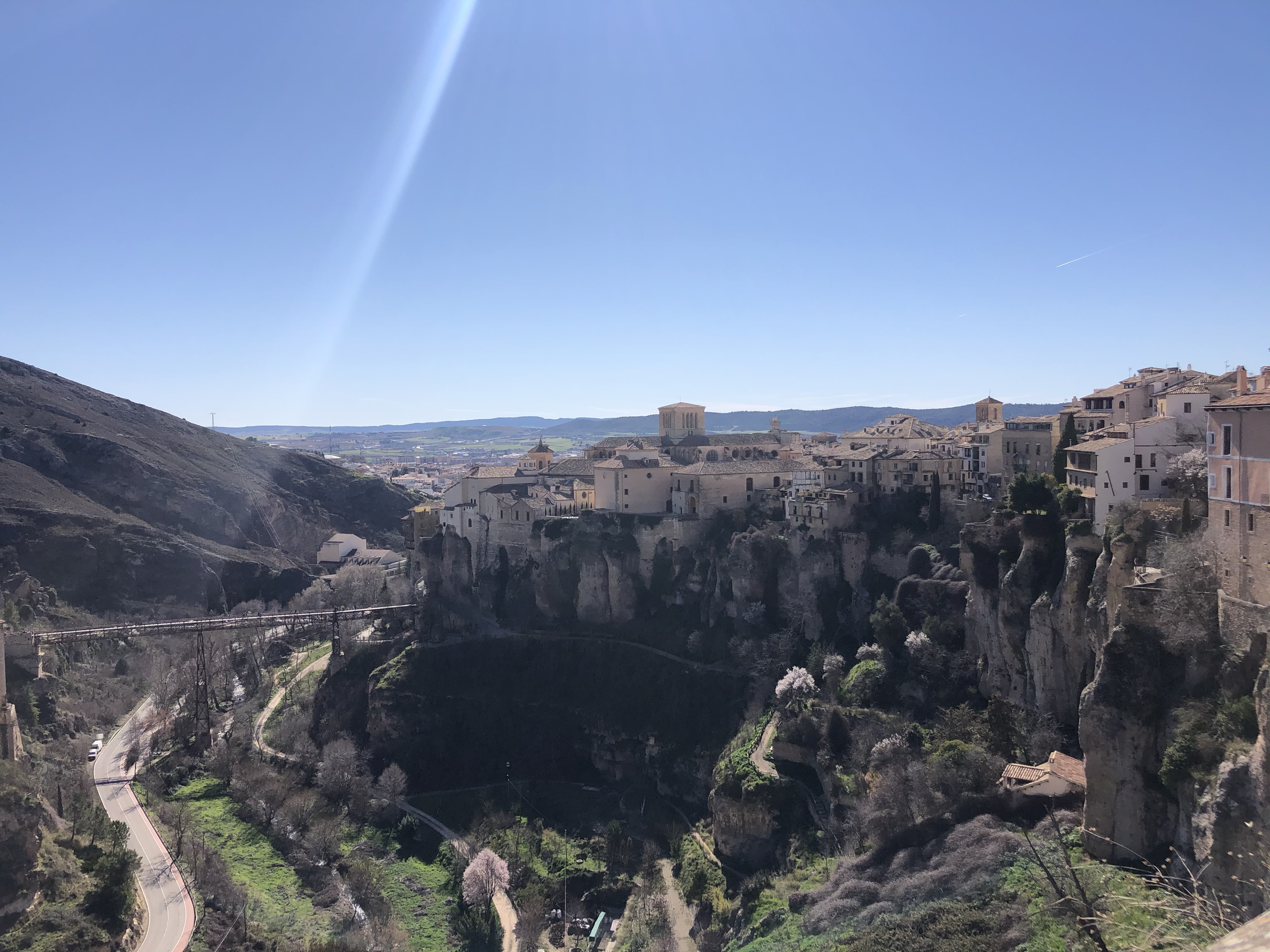 We visited in February and there were thousands and thousands of almond trees bursting with pink blossom on the route to Cuenca and some in the main city. We walked from the main plaza up to the hanging houses and around the rocks and back through the park.