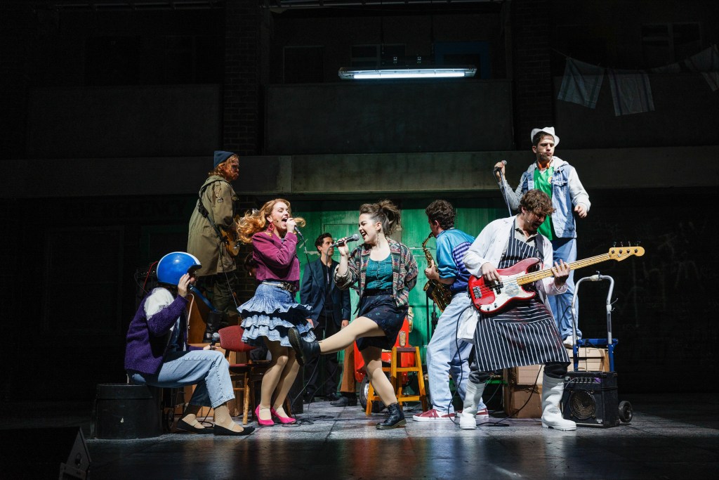 The script is written by the original writer of Roddy Doyle who perhaps gives a lighter and watered down version of the movie. With less ties and pulls of socio-political issues, although vaguely present, plays heavily on the music and banter and humour of that time between the group. Expect sexualised jokes and dad jokes to pad out the musical score which is always performed either as a rehearsal or as a gig. The music doesn’t necessarily bring much to the storyline, neither does it move the story on for substance, instead it is purely for performance purposes which could be percieved as a little clunky and stop-start but the performances themselves are far too excellent to get caught up in the lack of storyline or emotion that they bring.